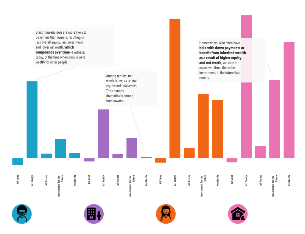 When we put all assets, debt, equity, and investments together and compare them across simple demographics, we can see the impact of homeownership on net worth clearly.