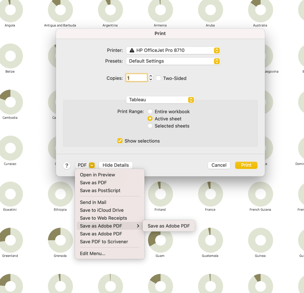 Anyway, once you have your small multiples, put the sheet into a dashboard and then save the dashboard (the active sheet) as an Adobe PDF: