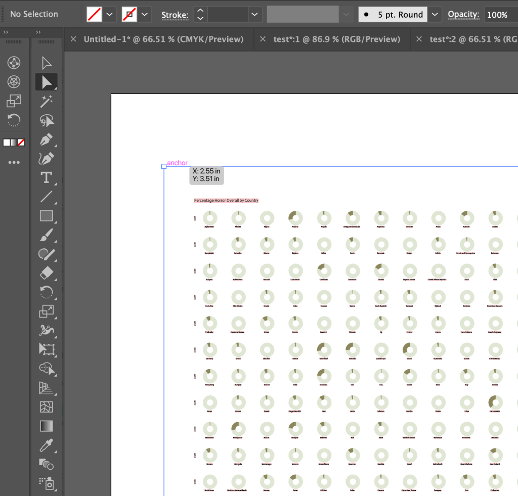 This will put all your small multiples, as you’ve organized them, into a single PDF. If you only save the worksheet, you’ll get many pages, making your work in Illustrator much more complicated. This is what it looks like when you import a worksheet vs a dashboard into Illustrator: