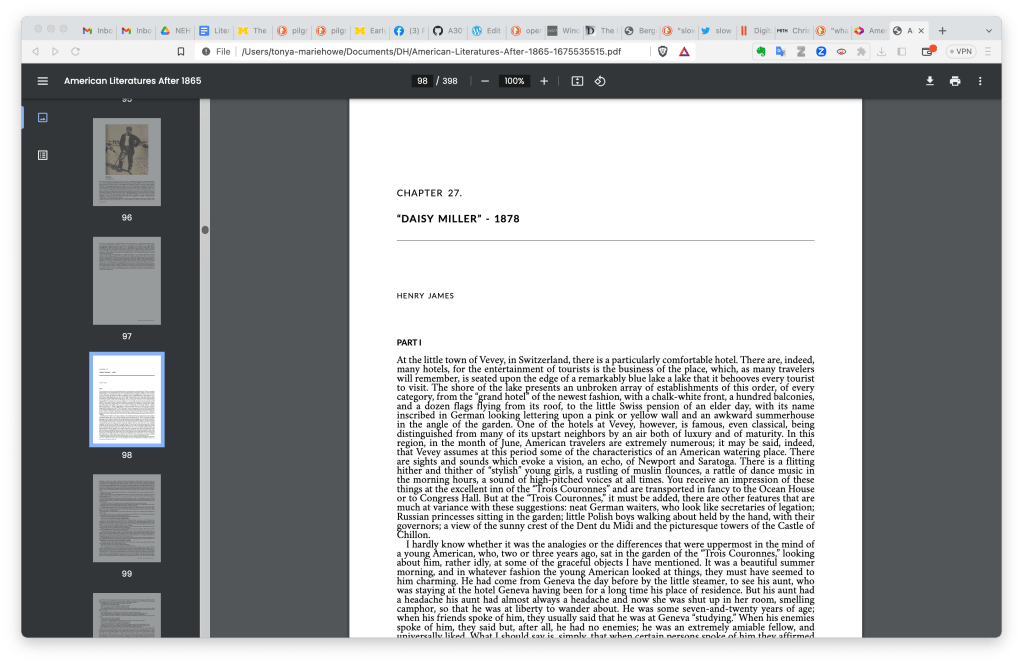 If you’re going to be adding a text to LiC–including page images but not annotations, which are time-consuming–then this is the workflow for you. There are many ways to interact with and contribute to LiC, including proofreading individual texts, adding XML annotations, and collaborating to produce complete digital editions, but as much of the work is personal and idiosyncratic, we’ll focus on this for now. Our 2023-2024 NEH ODH grant is focused on building out the content of Literature in Context so that faculty can legitimately turn to our anthology to create virtually any course reading list they may want, and in order to do that, we needed to focus on getting the basic, reliable content of the digital text in, rather than enhancing it with annotations.