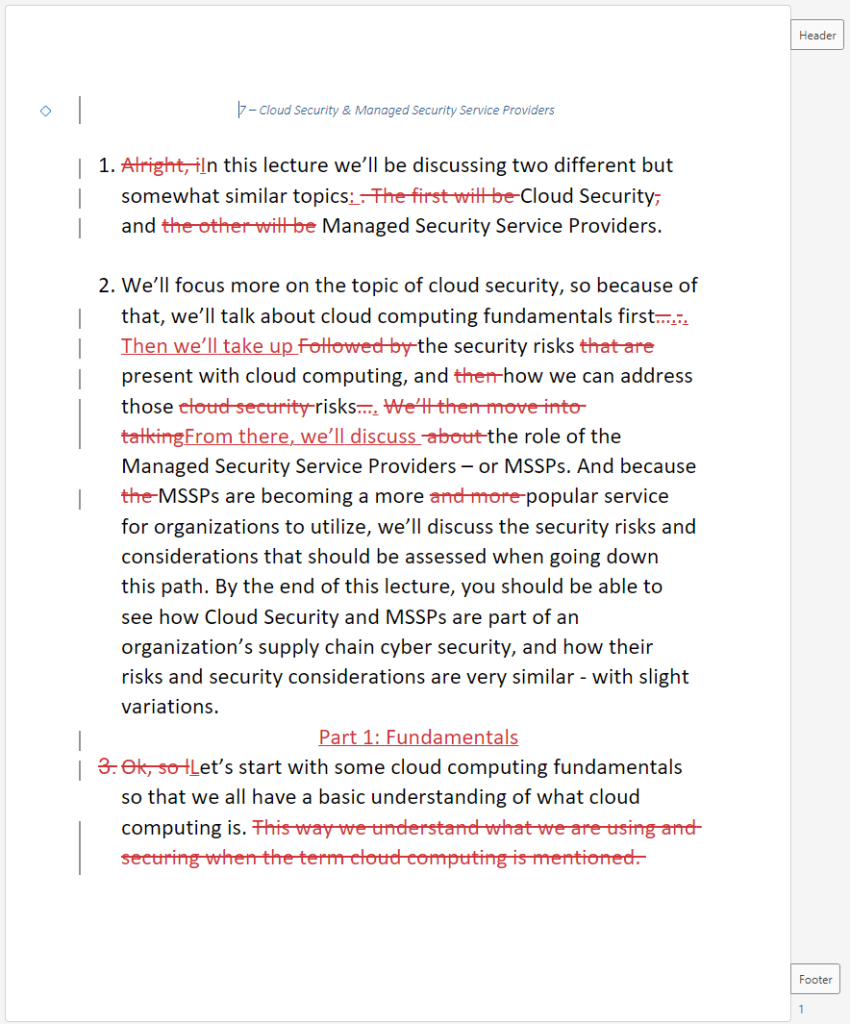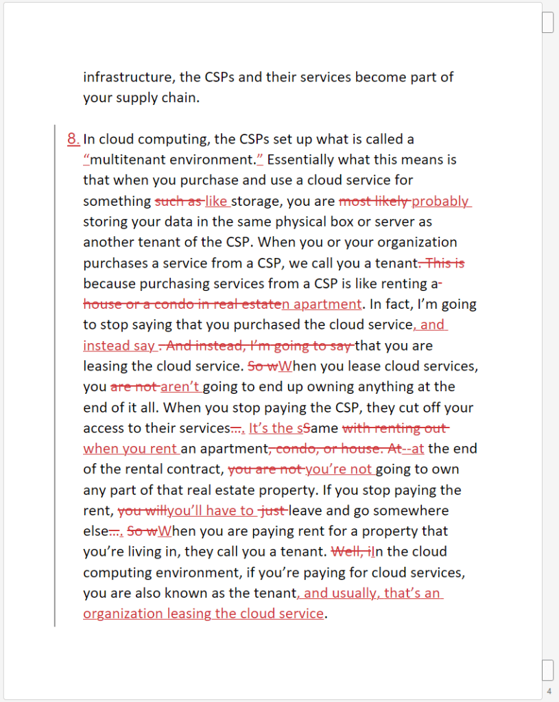 The very first thing you’ll need to do is get a handle, even a preliminary handle, on the content. Learning designers have to be good at understanding new content quickly, so it’s a great career for folks who like to be exposed to new things all the time. After editing a script that goes with a PowerPoint about Cloud Computing Security, I have a pretty good idea of how to render the narrative visually, instead of just as bullet points or text and static images, as often is the case with PPTs. As I’m editing, I’ll try to picture ways to make the content come alive, and I keep in mind the kind of assets that come with Vyond as I do so.